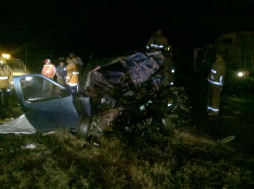 Víctor Pérez Cruz comandante de la corporación explica que al llegar al lugar del accidente los cuerpos se encontraban prensados en el interior de la pick up. El cuerpo de emergencia del puerto industrial tuvo que utilizar las quijadas de la vida para poder rescatarlos.