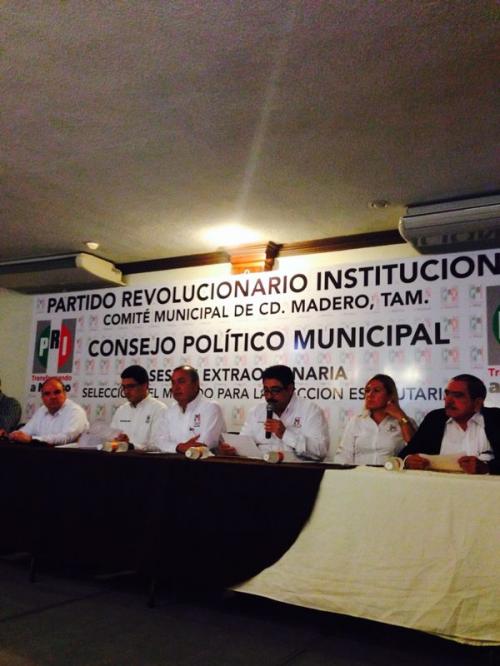 Madero, Tamaulipas.- El consejo político municipal del PRI de Ciudad Madero desarrollo ayer una sesión extraordinaria donde se designó el método de votación para la elección del presidente del partido, lo cual pude darse en una o dos semanas.