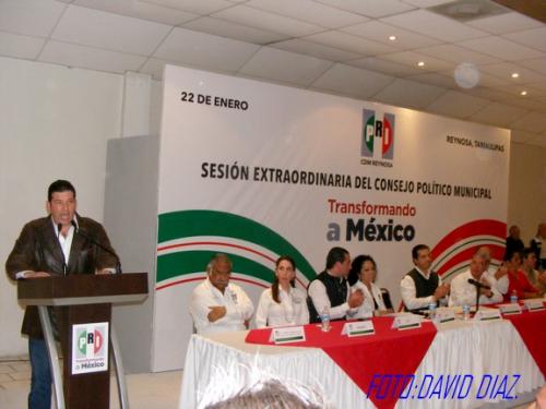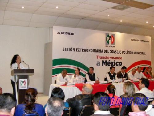 Reynosa, Tamaulipas.-Militantes del partido Revolucionario Institucional, celebraron su sesión extraordinaria del Consejo Político Municipal, donde establecerán las reglas de la próxima elección interna para cambiar la mesa directiva, por lo que esperan la convocatoria que emitirá el Comité Directivo Estatal de ese partido político.