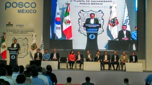 El gobernador del estado Egidio Torre Cantú junto con el secretario de economía federal Ildefonso Guajardo Villarreal y el presidente de POSCO Internacional Shun Young Yan así como representantes de la empresa inauguraron la segunda planta, que va a generar más de 2220 empleos de manera directa.