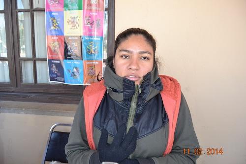 Ella y el resto de artesanos a los que acompaña, se dedican a la venta de artesanías típicas de su pueblo, como el dulce regional, artesanías de barro y madera, ropa y tejidos de tela, el tradicional mole negro y diversos artículos que son muy aceptados en esta frontera.