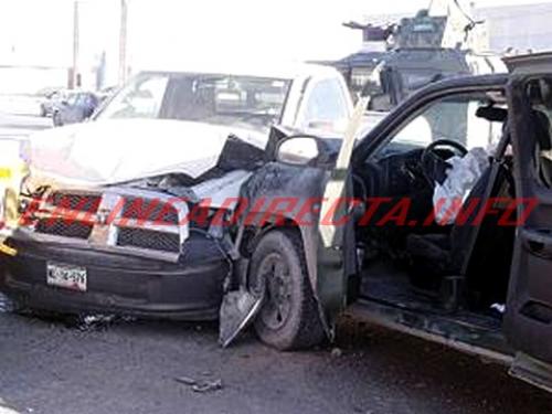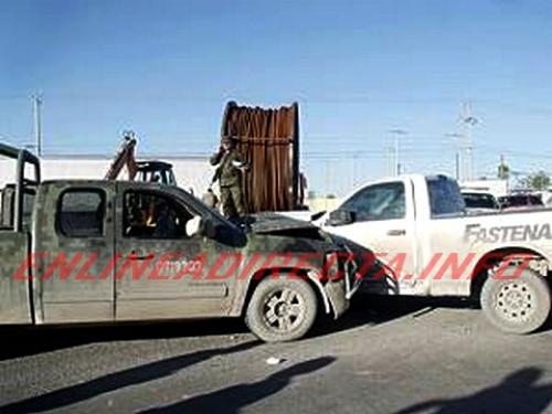 Reynosa, Tamaulipas.-Accidente vial se registro en una concurrida arteria de esta localidad, donde dejara como saldo por lo menos cinco soldados lesionados y cuantiosos daños materiales en las unidades que participaron.