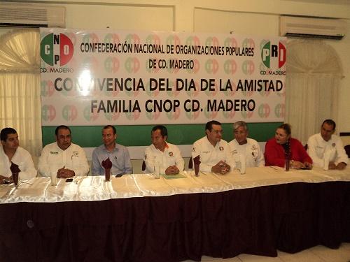 Como parte de las actividades, el pasado jueves la CNOP de Ciudad Madero, llevó a cabo su convivencia por el día de la amistad, la cual fue encabezada por el líder estatal, Alfredo Treviño Salinas, quien fuera aun presidente del PRI en la urbe petrolera, Julio Cesar Barrientos Cisneros, la secretaria general Samira Sosa, el nuevo dirigente, Felipe Jiménez, así como los organizadores del evento, Fidencio Izaguirre García y Fernando Lanton.
