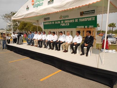 Fue en la explanada del Centro de Convenciones y Exposiciones de Tampico donde se dieron cita los alcaldes de Madero, Esdras Romero Vega, de Altamira Armando López Flores, de Tampico el Síndico José Antonio Mathieu Faure, en representación del presidente municipal Gustavo Torres Salinas, diputados locales y el representante de los concesionarios de esta zona.