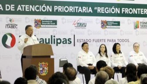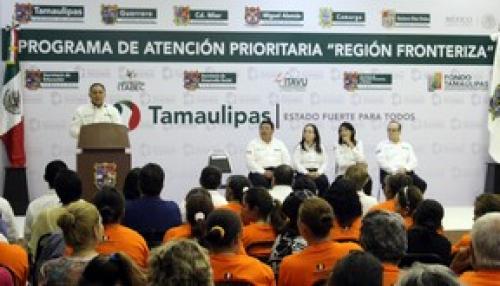 CIUDAD GUERRERO, Tamaulipas.-Por indicaciones del Gobernador Egidio Torre Cantú, los Secretarios de Desarrollo Económico y Turismo, Mónica González García; de Desarrollo Social, Homero de la Garza Tamez y de Educación, Diódoro Guerra Rodríguez, acompañados por la alcaldesa Nathyeli Contreras Villarreal, pusieron en marcha en esta localidad el Programa de Atención Prioritaria “Región Fronteriza” en donde anunciaron recursos por más de 100 millones de pesos para los municipios de Guerrero, Mier, Miguel Alemán, Camargo y Díaz Ordaz.