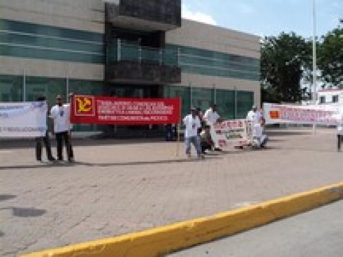 Madero, Tamaulipas.-Un reducido grupo de integrantes del Movimiento de Regeneración nacional (MORENA), realizaron una marcha por una de las principales avenidas de Ciudad Madero, la Francisco I. Madero, como protesta contra el gobierno federal por la falta de empleo y los bajos salarios que existen en el país.