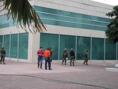 Fue el secretario del ayuntamiento, Sergio López de Nava Olvera, acompañado del secretario de finanzas, Fernando Rivera y del Director de recursos humanos, Pedro Covarrubias, quien dio a conocer que el llamado lo recibió la secretaria del conmutador a las 9:30 horas, por lo que de inmediato se puso en conocimiento del hecho al grupo de coordinación municipal de seguridad y en especifico a la primera zona naval, cuyo personal en escasos 12 minutos arribó a la presidencia para iniciar con la revisión de rutina.
