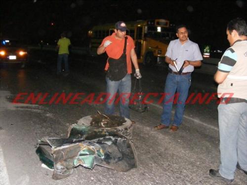 De acuerdo con versiones de testigos señalaron a las autoridades que la unidad se desplazaba de oriente a poniente sobre la carretera Rio Bravo-Reynosa, y que al llegar al llamado puente vehicular “El Húngaro”, a la mitad del puente se proyecto primeramente con la barda de contención de metal la que impidió que se fuera al vacio y reboto dos unidades para posteriormente dar piruetas sobre su eje para quedar volcada la unidad con las llantas hacia arriba.