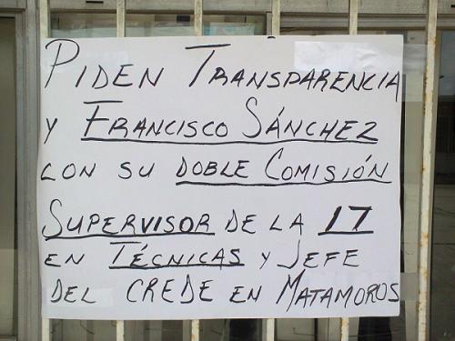 Los maestros están conscientes de que al cerrar la oficina del Jefe de Regionales en Matamoros están cometiendo un delito, pero dijeron que es necesario que los altos mandos de la Secretaria de Educación volteen a verlos porque ya son muchas las peticiones que se han hecho por escrito incluso idas a ciudad Victoria a ellos les ha costado mucho dinero y la desesperación los ha orillado a estas circunstancias, y tienes que llamar la atención para ser escuchado, expresaron los inconformes.