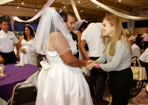 La oficial Primero del Registro Civil en Matamoros, Blandina Rosa Guerra Fernández, fue la encargada de realizar la ceremonia de casamiento a las parejas asistentes quienes juntos en familia pudieron disfrutar de su fiesta de bodas con pastel, baile y regalos que les ofrecieron el Gobierno del Estado, DIF Tamaulipas, Presidencia Municipal y DIF Matamoros para celebrar su unión.