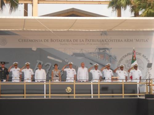 Tampico, Tamaulipas.-El almirante Vida Francisco Soberón Sáenz, Secretario de Marina presidió este medio día la ceremonia de la botadura de la patrulla Costera ARM Mitla, junto con la madrina de la misma, Mercedes Juan López, secretaria de Salud y el gobernador del estado Egidio Torre Cantú.