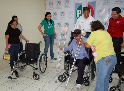 Por ello es que hizo entrega de 5 sillas de ruedas a Juan Tristán Ovalle, Martha Leonorilda Vázquez Méndez, Margarita Benavides Ortegón, José Andrés González Alvarado, y a Guillermo Solís Cruz, quienes agradecieron al partido por cumplirles su petición.