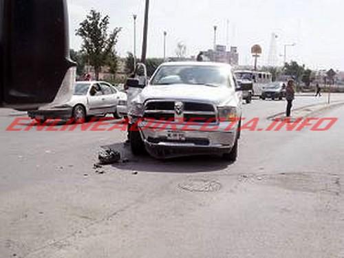 Se informó que la joven se desplazaba de norte a sur por la calle 5 de Mayo, pero cuando iba a cruzar el Boulevard Hidalgo, no se percató que se aproximaba una camioneta oficial, por lo que la impactó en forma frontal registrándose daños materiales únicamente.