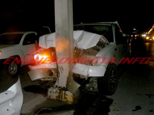 La unidad en la que viajaba la conductora es una camioneta Ford Pick Up, cabina y media, modelo aproximado 2008, color blanca, con placas de circulación WK-50-219 de Tamaulipas la que quedara impactada en un anuncio vial y donde frecuentemente ha habido accidentes viales en las que han perdido la vida conductores en ese mismo lugar.