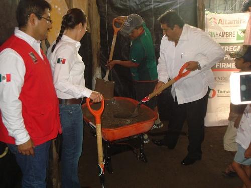Altamira, Tamaulipas.- Fue a través de la Cruzada Nacional Contra el Hambre como el gobierno de Altamira realizo la entrega de más de 450 pisos firmes al mismo número de familias de las colonias de la zona centro norte de este municipio. El alcalde Armando López Flores dijo que con el apoyo del gobierno de la república se logró ejercer un presupuesto de más de 4 millones de pesos para el programa de Piso Firme y fue en la colonia Guadalupe Victoria donde se llevó el beneficio a 52 familias.