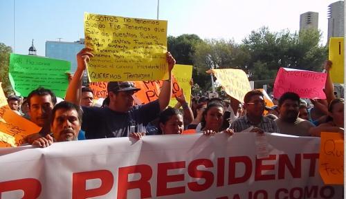 Desde las 8 de la mañana llegaron a la explanada de la plaza principal con pancartas en mano con las leyendas como ¨ Soy de Guanajuato y quiero trabajar¨ entre otras además de gritar consignas en contra del alcalde de la ciudad José Elías Leal, como ¨ Yo vote x ti Pepe Elías¨.