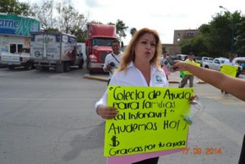 Nuevo Laredo, Tamaulipas.-Un grupo de alumnos y maestros del Colegio Montessori y de la Unviersidad del Norte de Tamaulipas (UNT), decidieron salir de sus salones un momento y postrase en el cruce de las avenidas Guerrero y Héroe de Nacataz, con la finalidad de recabar ayuda económica para las familias que perdieron todo su patrimonio durante el estallido de la colonia Infonavit el pasado martes.