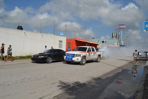 Todos los días a través de la coordinación de la Secretaría de Desarrollo y Bienestar Social que dirige Luis Alfredo Biassi y con el apoyo de la Dirección de Protección Civil, se visitan de 4 a 6 colonias diarias, con un promedio de cuatro máquinas fumigadoras, así es como han logrado fumigar 190 colonias del sector oriente y poniente.