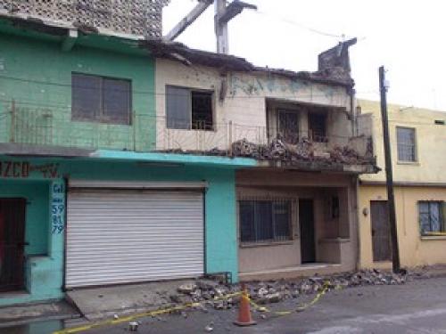 Matamoros, Tamaulipas.-Una casa con más de 40 años de construida en la Zona Centro sobre las calles Once y Terán en el Barrio conocido como la Capilla, una vivienda se desplomo de su fachada debido a las lluvias torrenciales que cayeron por la mañana de este miércoles.