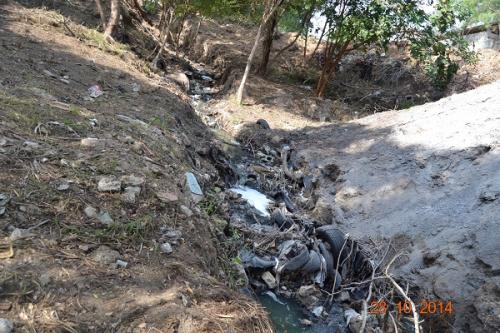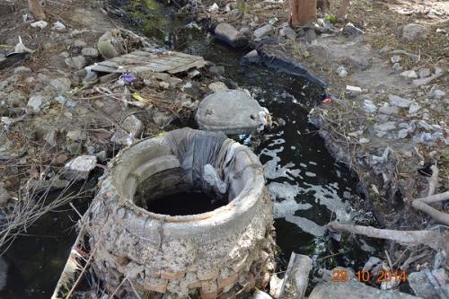 Unos trabajadores que limpian el terreno que recientemente adquirió el zoológico, descubrieron la alcantarilla que está en mal estado, y la fuga de aguas negras que brota incontenible por el arroyo formado a través de los años, lo que se nota por la profundidad formada por el correr del líquido.