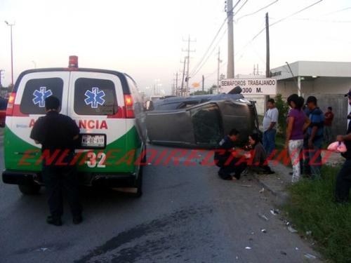 Reynosa Tamaulipas.-El exceso de velocidad y la falta de precaución al conducir ocasionaron que una conductora se volcara en su unidad para salir lesionada y dejar cuantiosos daños materiales en la unidad que se transportaba.