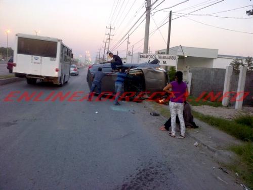 De acuerdo a testigos que vieron el accidente señalaron que la conductora viajaba de oriente a poniente sobre el carril derecho de baja velocidad y que repentinamente se volcó por lo que varios jóvenes que se encontraban en el lugar ayudaron a sacar a la mujer que estaba atrapada en la unidad y que no podía salir pero que finalmente salió solo con golpes que se propino.