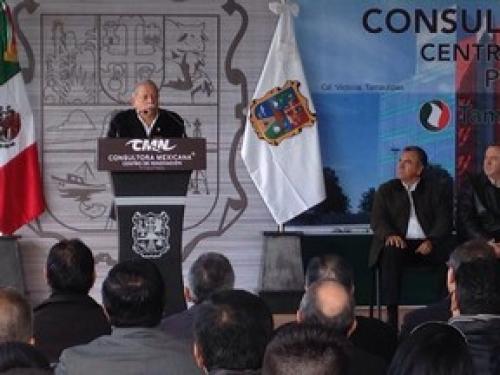 CD. VICTORIA, Tamaulipas.-El Gobernador Egidio Torre Cantú puso la primera piedra del Centro de Innovación Consultora Mexicana en el parque Tecnotam en esta capital, con una inversión de 180 millones de pesos; generará 300 empleos especializados en capacitación, vinculación empresarial y desarrollo de software.