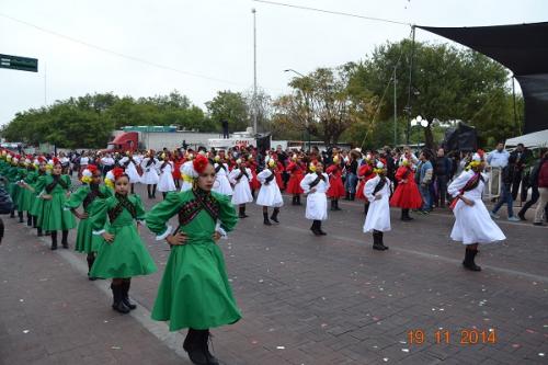 Nuevo Laredo, Tamaulipas.- Con la presencia de autoridades civiles, educativas y militares, cinco mil alumnos de diferentes niveles educativos, así como organizaciones deportivas y de auxilio a la población, desfilaron sobre la avenida Guerrero en el marco del 104 aniversario del inicio de la Revolución Mexicana.