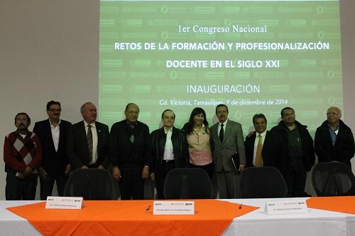CD. VICTORIA, Tamaulipas.- Ante la presencia de docentes provenientes de los estados de Coahuila, Durango, Nuevo León, San Luis Potosí y Zacatecas, el Titular de la Secretaria de Educación de Tamaulipas, Diódoro Guerra Rodríguez inauguro los trabajos del primer Congreso Nacional “Retos de la Formación y Profesionalización Docente en el Siglo XXI”.