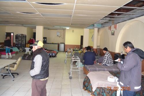 La mayor parte del día el albergue permanece vacío, debido a que la mayoría de los refugiados salen a las calles a buscar trabajo o a desempeñar alguna actividad, por lo que solo se quedan los adultos mayores y los enfermos, por su indefensión.