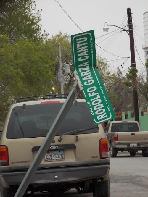 Empero, en un recorrido iniciado a partir del inicio de la Avenida Rodolfo Garza Cantú en el cruce con Boulevard Hidalgo, la nomenclatura está severamente dañada, en el cruce con Praxedis Balboa el señalamiento que identifica la vialidad está destruido.