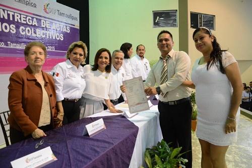 Destacó el apoyo brindado por el Gobierno de Tamaulipas y el Sistema para el Desarrollo Integral de la Familia, auspiciando la campaña de Matrimonios Colectivos, formalizando las uniones que facilitan cristalizar proyectos de vida.