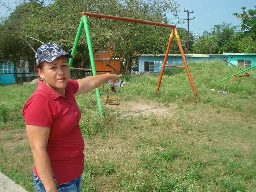 Altamira, Tamaulipas.- Al menos unas 30 familias de la colonia Santo Domingo de Altamira se encuentran expuestas ante la falta de mantenimiento de la única área verde que se encuentra en ese sector, ocho meses han transcurrido y la maleza ha crecido y que ha vuelto imposible hacer uso de las canchas y juegos infantiles.