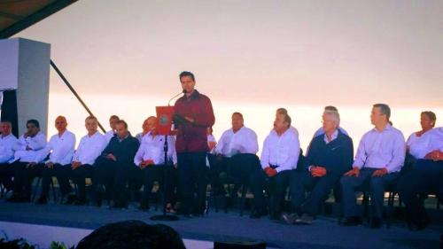 Acompañado del gobernador del Estado Egidio Torre Cantú, el secretario de Comunicaciones y Transporte, Gerardo Ruiz Esparza y del secretario del Trabajo, Alfonso Navarrete Prida, el presidente Peña Nieto develó la placa alusiva a la inauguración del Viaducto Reynosa.