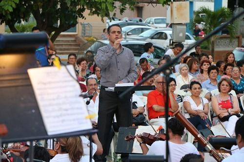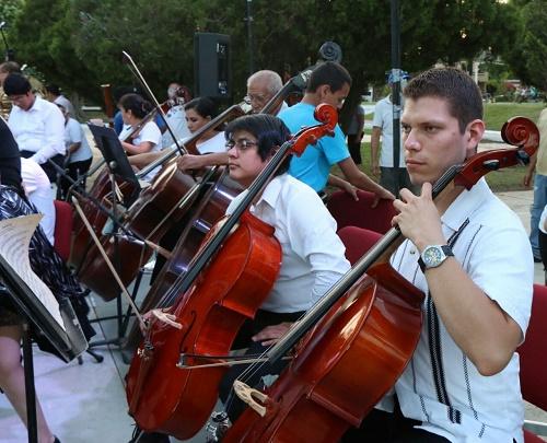 Bajo la batuta del maestro Arturo Esquivel Brandt, la Orquesta Sinfónica de la Universidad Autónoma de Tamaulipas ofreció un concierto en el parque de la colonia Petrolera, donde estuvo presente el alcalde, Gustavo Torres Salinas.