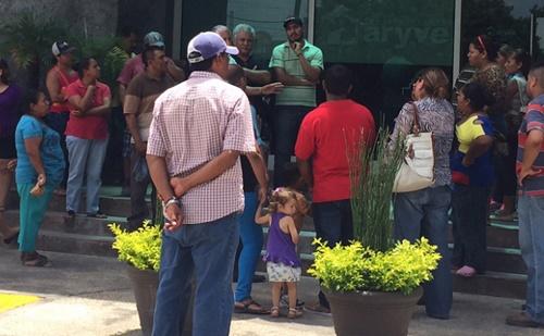 Matamoros, Tamaulipas.-Habitantes de los fraccionamientos que se encuentran bajo el agua por las lluvias del pasado fin de semana en Matamoros, se apostaron en las oficinas de la Constructora ARYVE que se ubican en las calles 7 e Iturbide de la zona centro.