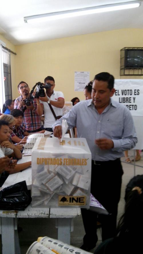 El presidente de este partido político emitió su sufragio a las 12:40 horas en la casilla 1350, casilla ubicada en el Jardín de Niños México, en la colonia del mismo nombre.