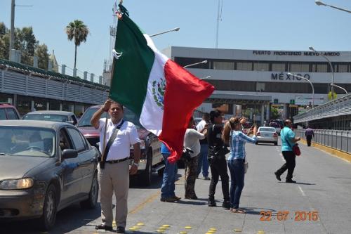 La manifestación inició al filo del mediodía justo a la mitad de este importante cruce internacional, en una hora en que cientos de personas en vehículo y a pie, cruzaban hacia Laredo, Texas, quienes apoyaron la causa promovida por el activista político, Francisco Chavira.