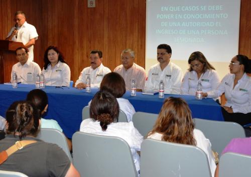 CD. VICTORIA, Tamaulipas.- A efecto de que el personal médico y administrativo del ISSSTE tenga conocimiento de la forma en que debe actuar y denunciar antes las autoridades correspondientes cuando reciban a pacientes en situaciones especiales, Agentes del Ministerio Público de la Dirección de Averiguaciones Previas de la Procuraduría General de Justicia del Estado, impartieron pláticas sobre ese tema, bajo la supervisión del director general Mario Alejandro Constantino Trejo.