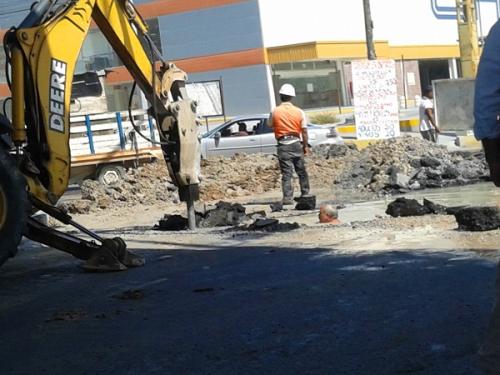 Este lunes durante gran parte del día una cuadrilla de trabajadores realizó labores de reparación de una enorme fuga de agua potable en el crucero de la Calle Rodolfo Garza Cantú y Libramiento de la Carretera a Monterrey-Matamoros.