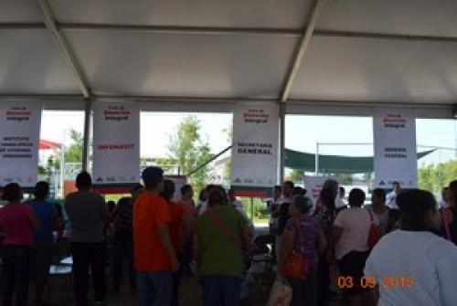 Nuevo Laredo, Tamaulipas.-Con la participación de todas las dependencias estatales y sus titulares, la Secretaría de Desarrollo Social (Sedesol) llevó a cabo el viernes la tercera Feria de Atención Integral en el Parque de Barrio ‘Villas de la Concordia’.