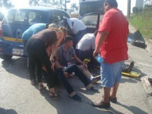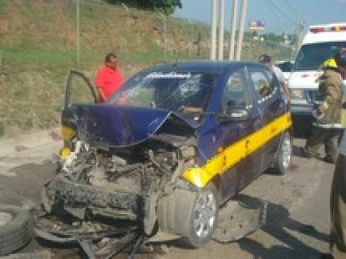 Altamira, Tamaulipas.-La imprudencia de un chofer de un taxi al intentar rebasar por el carril de baja un tráiler provoco un fuerte accidente donde cuatro jóvenes tripulantes junto con el conductor quedaran gravemente lesionados.