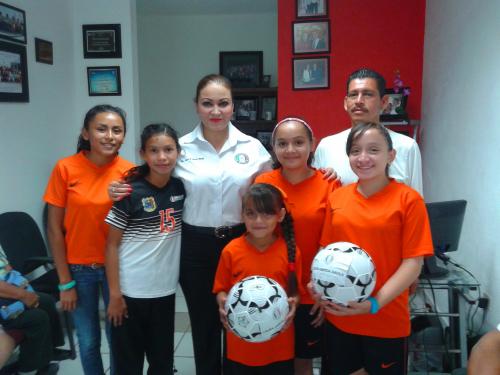La diputada local Laura García Dávila les hizo entrega del equipamiento deportivo y estimulándolas a continuar practicando deporte y una vida sana para orgullo y satisfacción de sus padres y amigos que las miran como ejemplo a seguir por su dedicación.