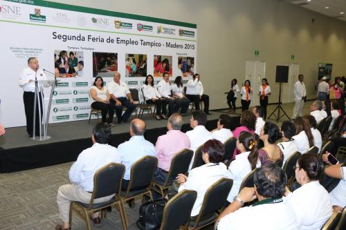 Cd. Victoria, Tamaulipas.- A través de la suma de voluntades entre los gobiernos federal y estatal, los ayuntamientos de Tampico y Madero, así como de la iniciativa privada, el presidente municipal de Tampico, Gustavo Torres Salinas, acompañado de la secretaria estatal de Desarrollo Económico y Turismo, Mónica González García, inauguró en el Centro de Convenciones y Exposiciones de esta ciudad la Segunda Feria del Empleo Tampico-Madero 2015, en donde cien empresas ofertaron 1,271 vacantes para profesionistas, técnicos y operarios en el ramo industrial, comercial y de servicios.