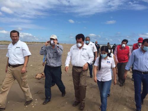 MATAMOROS, Tam.-Por instrucciones del Gobernador Egidio Torre Cantú, autoridades estatales de Protección Civil, Salud y Medio Ambiente, coordinadas por la Secretaría de Desarrollo Social, llevan a cabo trabajos para atender la contingencia por la marea roja que afecta la costa de Matamoros.