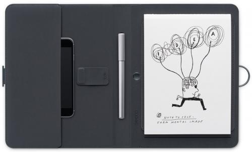 El bolígrafo se encarga de enviar señales a la app Bamboo Spark instalada en tu iPhone o teléfono Android para digitalizar los trazos que hagas, mientars que la cubierta guarda los garabatos de hasta 100 páginas para su posterior edición.