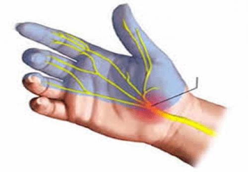 Dar golpecitos sobre el nervio mediano a nivel de la muñeca puede hacer que se dispare el dolor desde la muñeca hasta la mano (esto se denomina signo de Túnel).