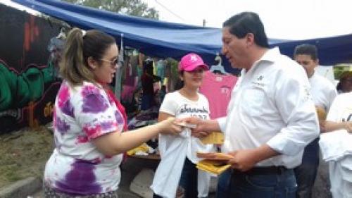 El abanderado del partido del Sol Azteca recorrió esta mañana el rodante de0 Germinal y dio a conocer sus propuestas de campaña tanto a los oferentes como a los ciudadanos que acudieron a realizar sus compras.