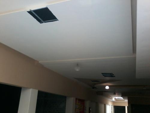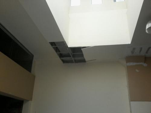 Dijo que es tabla roca la que se utilizó para los niveles asignados para los locales comerciales, y partes de este se encuentran colgando de los techos, así como también de las paredes.