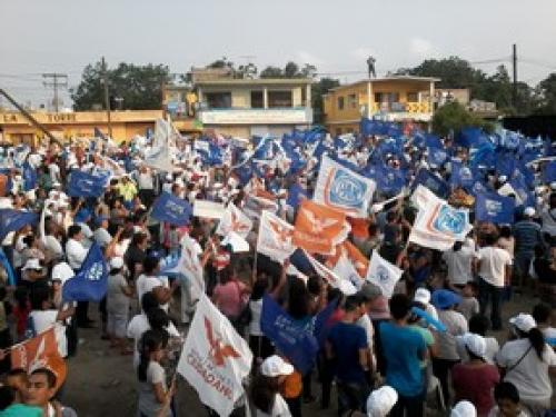 Madero, Tamaulipas.-El candidato del PAN a la gubernatura de Tamaulipas, Francisco Javier García Cabeza de Vaca, encabezó un mitin en la colonia Revolución Verde de Ciudad Madero.
